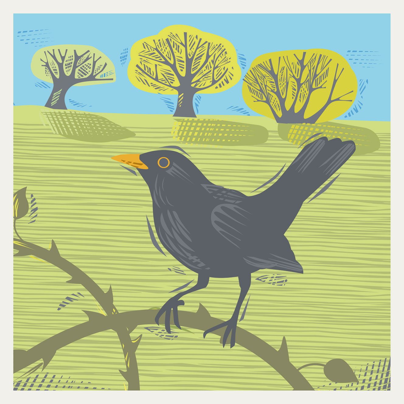 Greeting Card Greetings blackbird bird birds animal wildlife country countryside blank birthday art paint painting illustration illustrative happy pretty nice cheerful mum auntie aunt grandma sister daughter dad son grandad brother